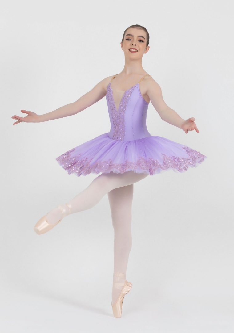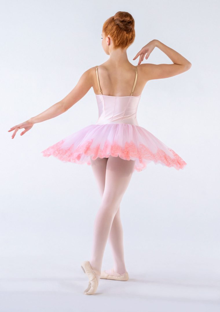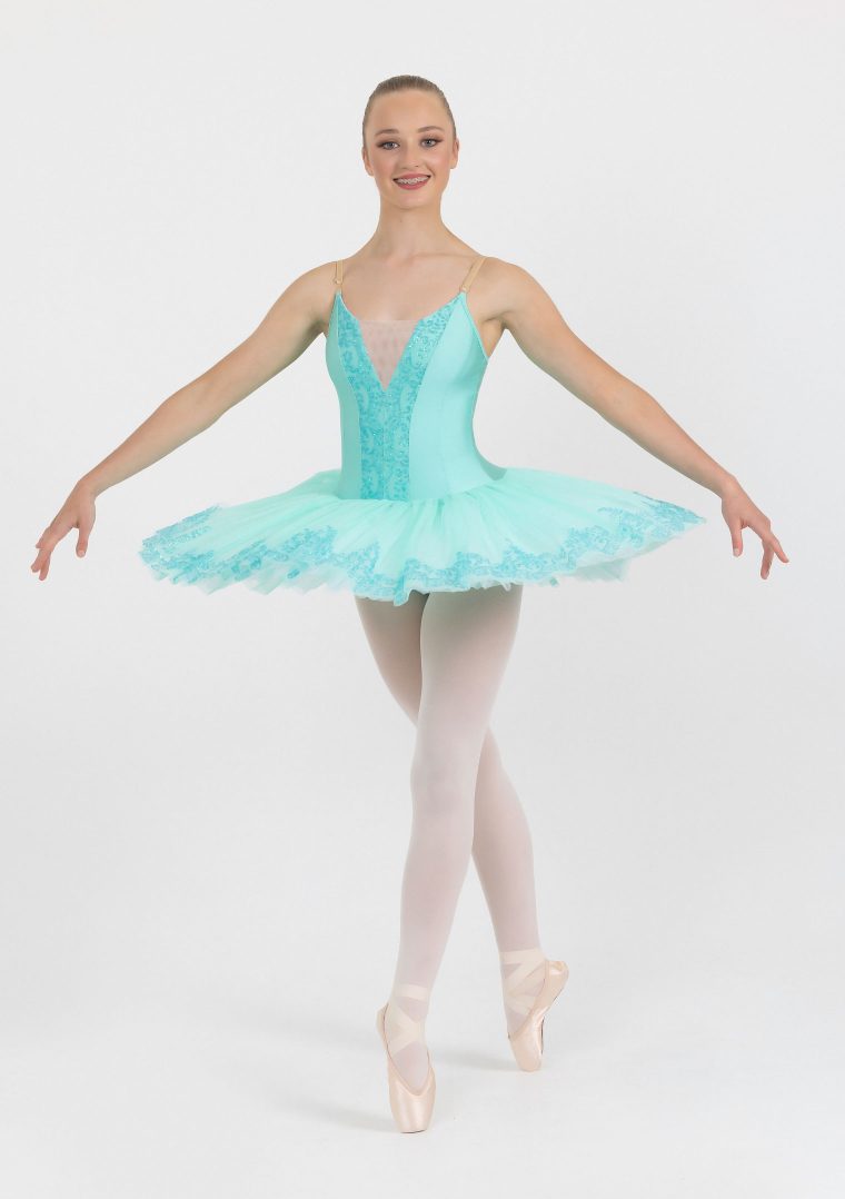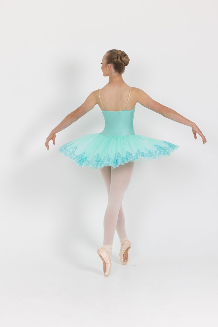 An exquisite tutu for any ballerina. With sparkling lace detail through the centre of the bodice and the edges of the tulle in a gorgeous matching shade. Includes 5 layers of tulle.