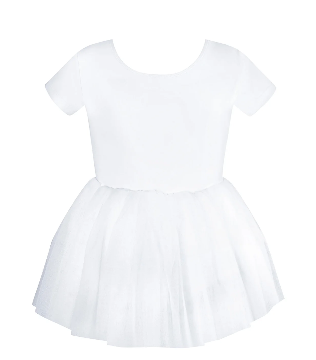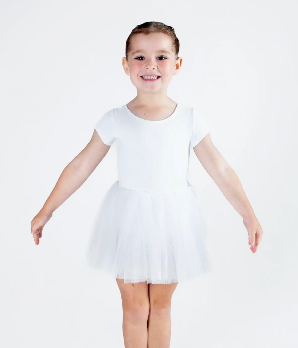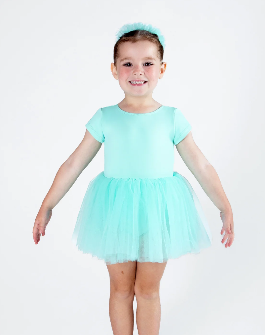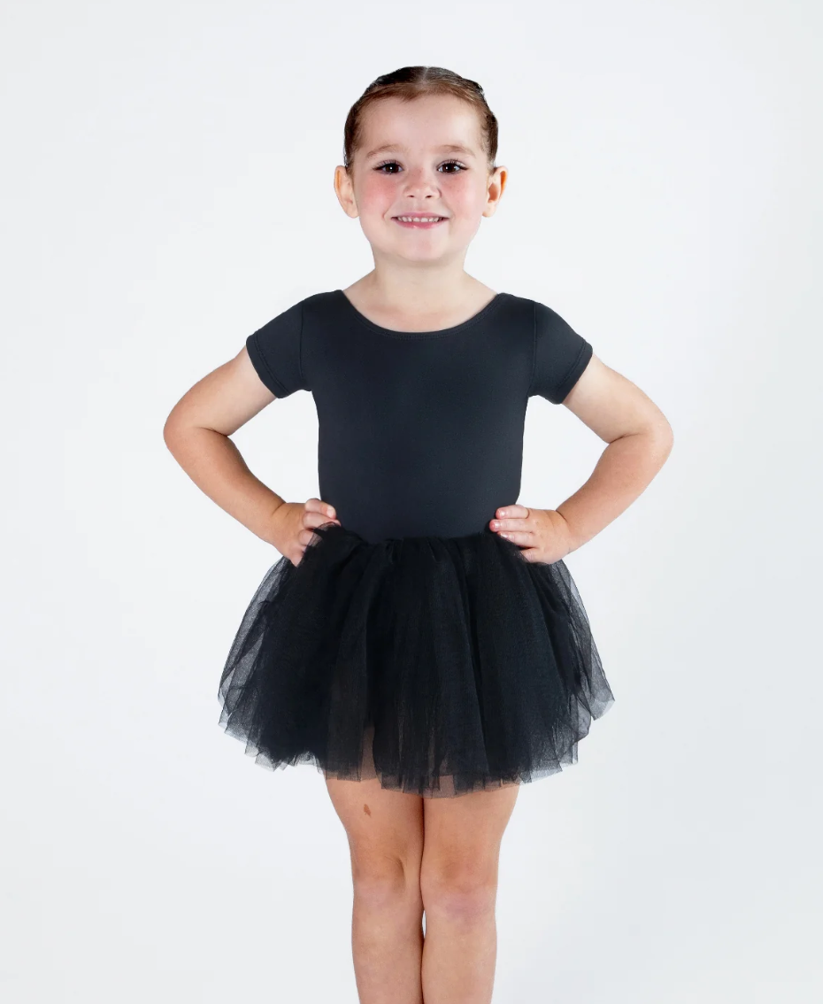 – Attached tutu skirt crafted with three layers of soft tulle for a voluminous ‘tutu look’